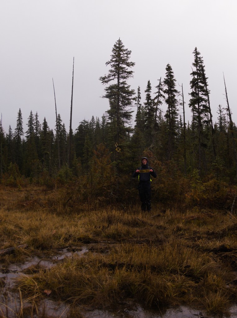 Hätten wir zu dem Zeitpunkt gewusst, dass bog einfach ein anderes Wort für Sumpf / Moorgebiet ist, hätten wir es uns wahrscheinlich trotzdem nicht anders überlegt. Wir gelanden durch einen zauberhaften Wald an den Rand einer großen, zugewucherten Fläche, über die vermutlich mit Schneeschuhen einfach spaziert werden kann – die ohne Schnee sich jedoch in eine Unendliche-Geschichte-ähnliche Sumpflandschaft verwandelt (Artax, das Trauma habe ich immer noch nicht überwunden). Knöcheltief durch den Morast bewähren sich zunächst meine Wanderschuhe, doch als ich bis zur Wade einsinke, sind die Fluten nicht mehr zu halten. Aber macht nix – der mehr als abenteuerliche Weg belohnt uns mit einem See, dessen Grüntöne uns ganz schön beeindrucken.