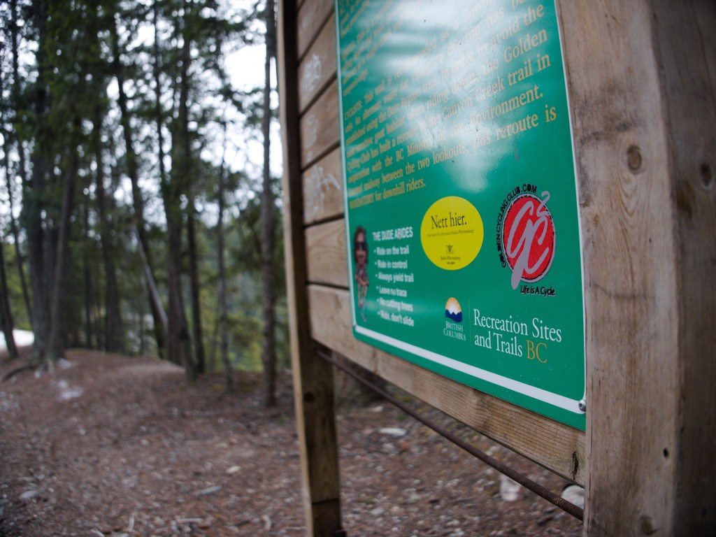 Der Roadtrip zurück nach Salmon Arm beschert uns einige schöne Stops. Unser kanadischer Mitbewohner hat uns von einem Freiluft-Gehege in der Nähe von Golden erzählt, in dem Wölfe leben. Das wollen wir natürlich sehen, wenn wir schonmal da sind, doch leider öffnet es erst um 12. Wir unternehmen also noch eine kleine Wanderung, um die Zeit rum zu bekommen. Auch in Golden hat es noch über (oder unter?) -10 Grad, doch aufgrund der Tallage liegt hier noch kein Schnee. Wir wandern einen kleinen Canyon entlang, dessen Aufstieg so steil ist, dass wir uns an einem Seil den Weg hochhangeln müssen. Die Natur hier oben ist ein ganz schöner Kontrast zum Wunderland beim Emerald Lake! Ich will ja nicht sagen, dass wir uns hier oben verewigt haben, aber …