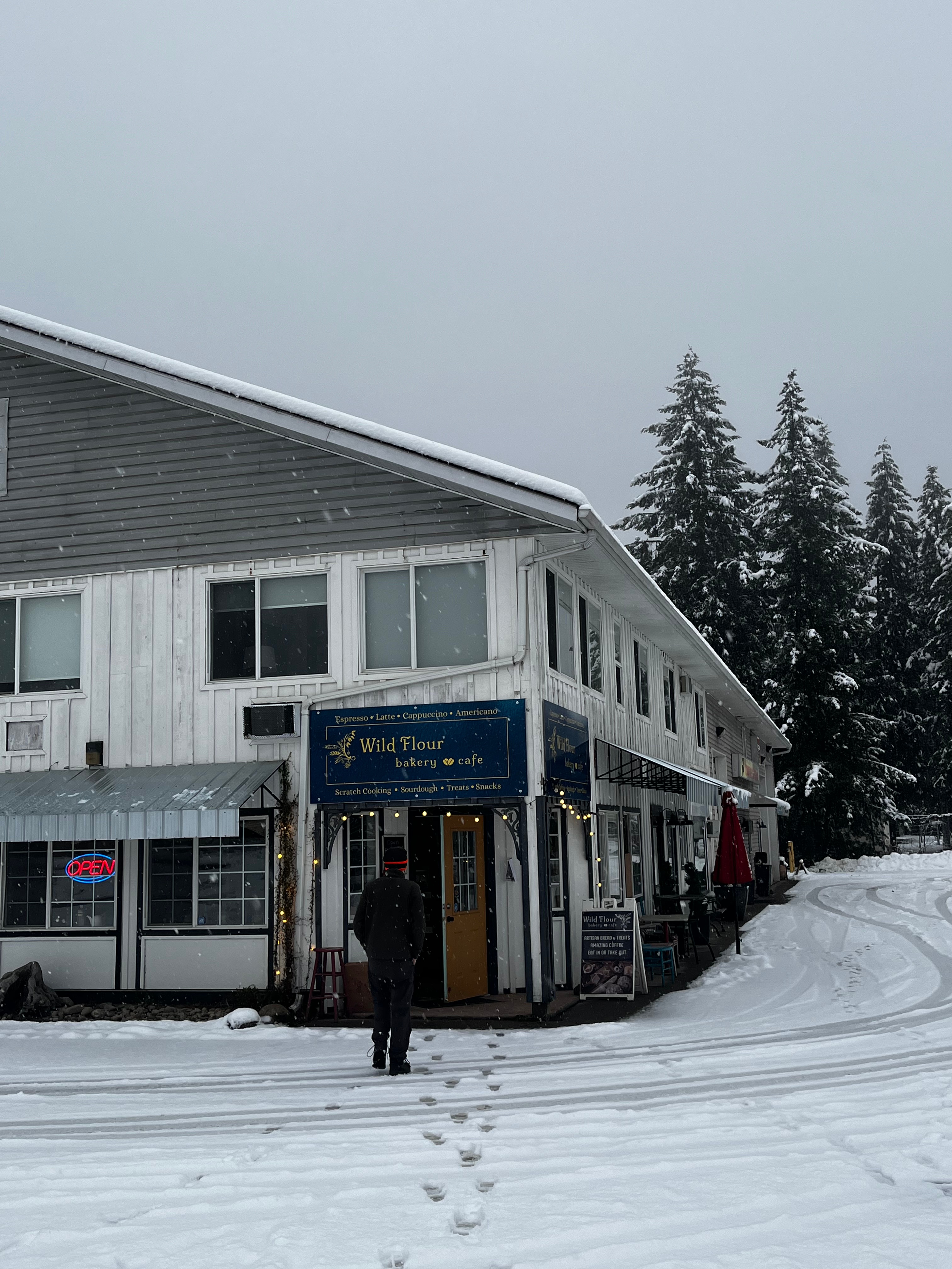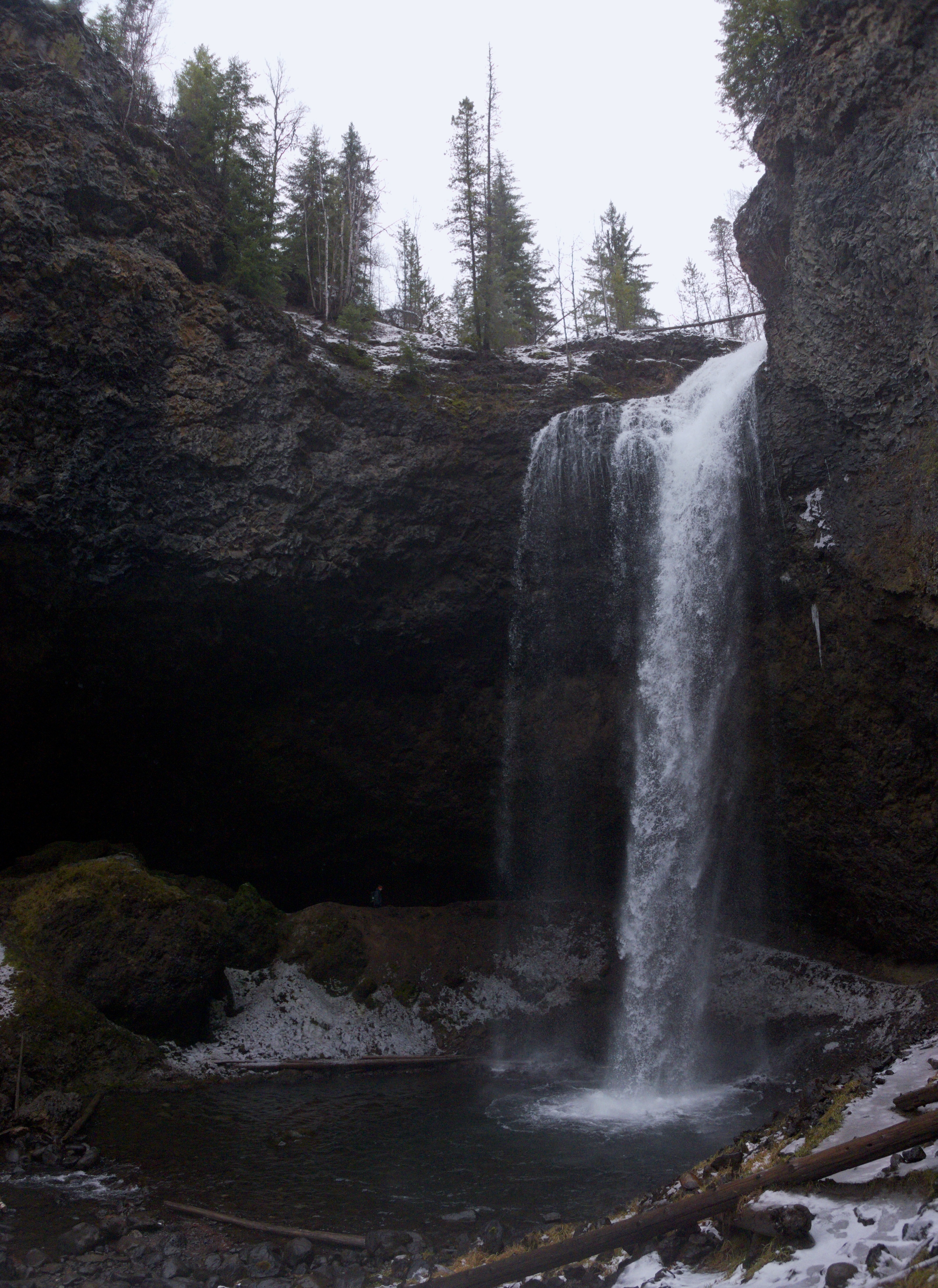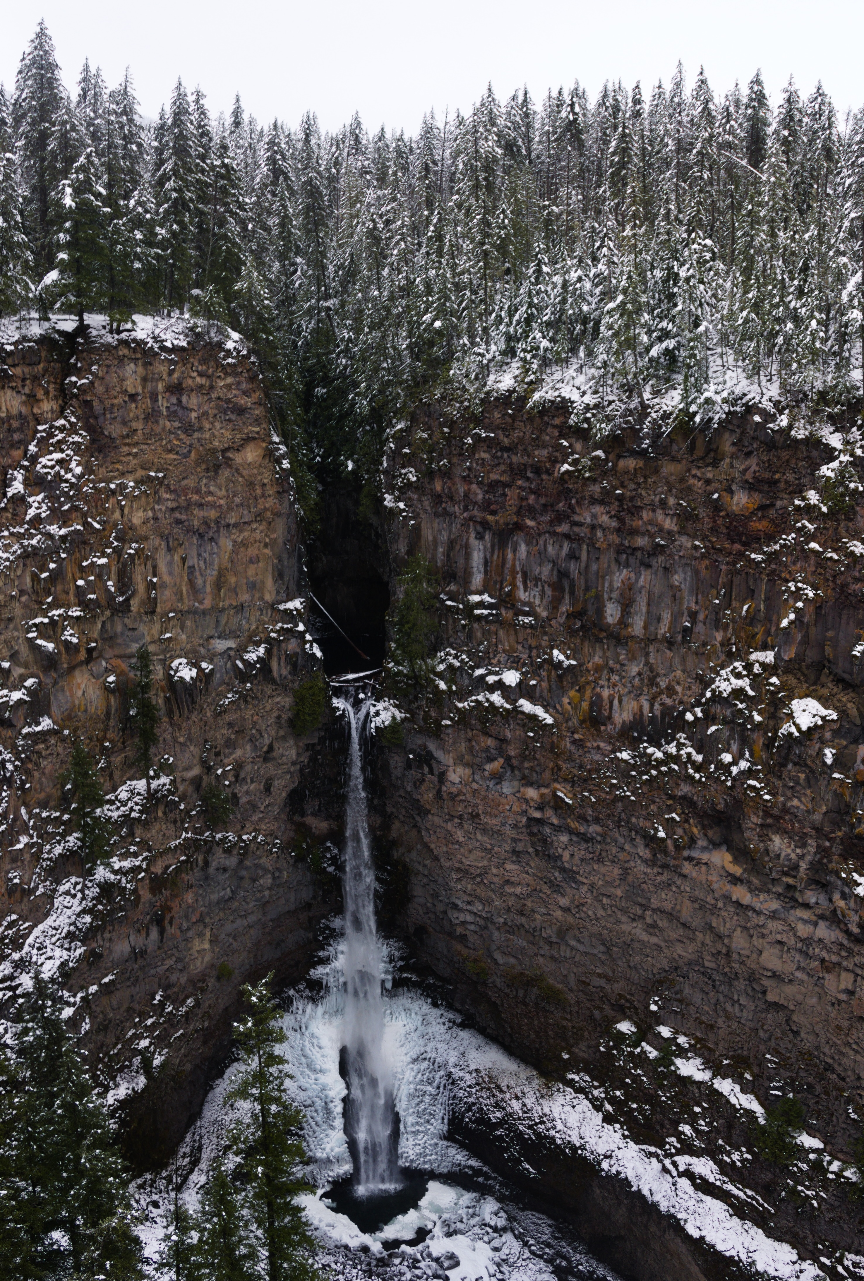 Sebastian und ich fahren am Abend los nach Clearwater und checken in ein wirklich wunderschönes Hotelzimmer ein, da die Balkontür direkt raus in den Schnee an den Rand eines Sees führt. Wir fallen aber direkt in die Betten und düsen am nächsten Morgen los in den Wells Gray Provincial Park, in dem sich unzählige Wasserfälle befinden. Wir stoppen nur kurz bei einem kleinen Bäcker und ab geht’s auf die (natürlich) nicht geräumten Straßen – wir wollen drei der Wasserfälle abklappern!